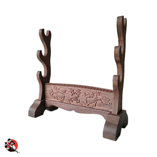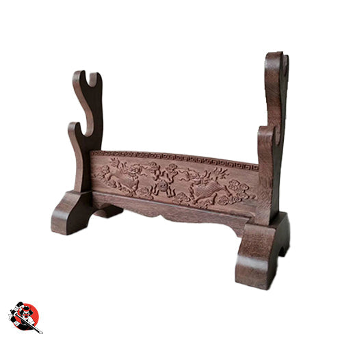 Entdecken Sie den Miharu-Ständer, ein eleganter Ständer speziell entworfen, um Ihr Katana mit Stil und Sicherheit zu präsentieren. Hergestellt aus hochwertigem Rosenholz, wird dieser Ständer Ihr Katana hervorheben und gleichzeitig seinen Schutz gewährleisten.
